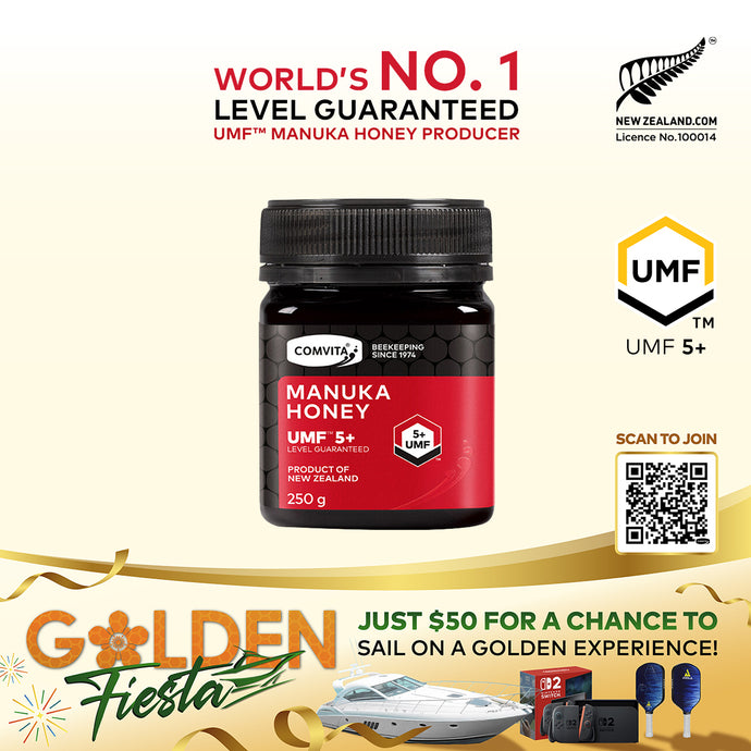 Manuka Honey comes from the nectar of the flower of the Manuka bush (Leptospermum scoparium) which is indigenous to New Zealand. It is the nectar and the bee that give this honey its unique properties. The number represents the unique signature compounds characteristic of this honey which ensures purity and quality. These include: the key markers of Leptosperin, DHA and Methylglyoxal (MGO).