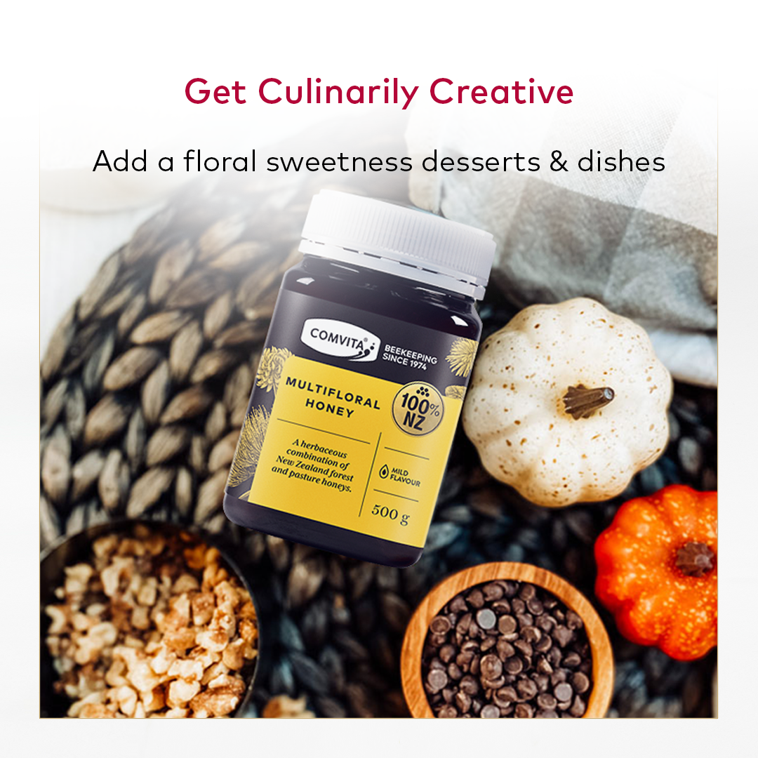 Comvita® Multifloral Honey is sourced from a variety of New Zealand flowers including New Zealand native plants. Comvita® Multifloral Honey is created using our world-renowned creamed honey process to create a honey with a beautiful smooth texture and superb spreadability.
