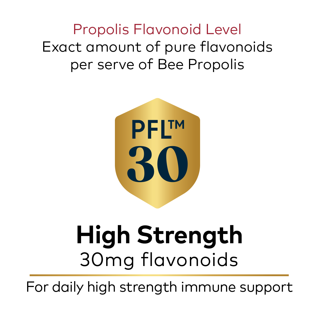 Backed by science, Immune Bee™ Propolis PFL™ 30 is a daily dose of high strength immune support containing 30mg pure propolis flavonoids per serve.