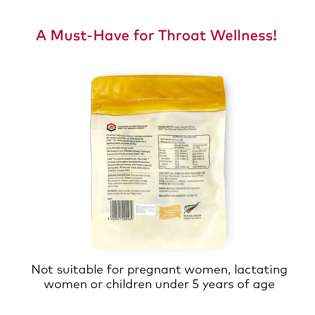 Feel the soothing refreshness with Manuka Honey Lozenges Try the soothing taste of Mānuka honey lozenges with lemon flavour. They are made with genuine UMF 10™ Mānuka honey from New Zealand. Mānuka honey is rare and unique with well known properties. Add a bit of lemon flavour and it tastes great.