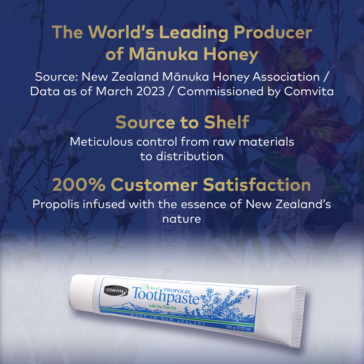 Made with bee propolis, Comvita Natural Propolis Toothpaste supports daily oral hygiene with nature’s own protective ingredient. Propolis is rich in naturally occurring flavonoids and has been traditionally used to help maintain a clean, healthy mouth. Blended with xylitol and natural essential oils, it helps reduce plaque and freshen breath, while gentle abrasives clean without being harsh on teeth or gums.